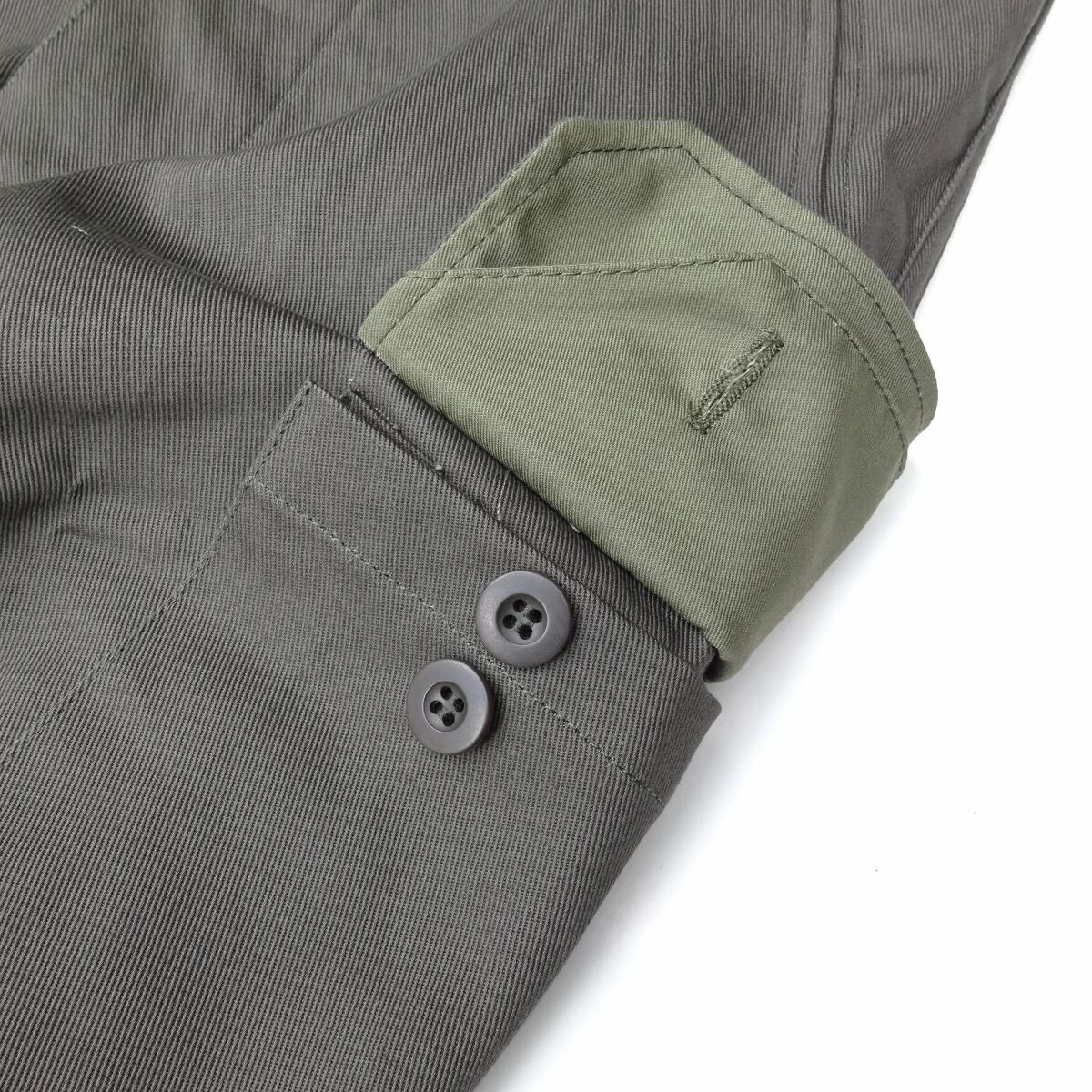フランス軍の名作カーゴパンツM47はマルジェラがコレクションに用いたことでも話題になりました。BERJAC製のM47は前期型を彷彿させるヘビーツイルを採用しウエストはシングルボタンの後期仕様と様々なオリジナルのディティールを踏襲しながらも、驚きの価格を実現しています。スタンプで押印されたサイズラベルが抜群の雰囲気を醸し出し一桁目(一の位)はウエストの大きさを、2桁目(十の位)はレングスを表します。フラップの中にボタン留め用の別フラップをしつらえた独特の作りのポケットはM47ならではのディテール、股下に配置された補強布も忠実に再現しています。フランス製。