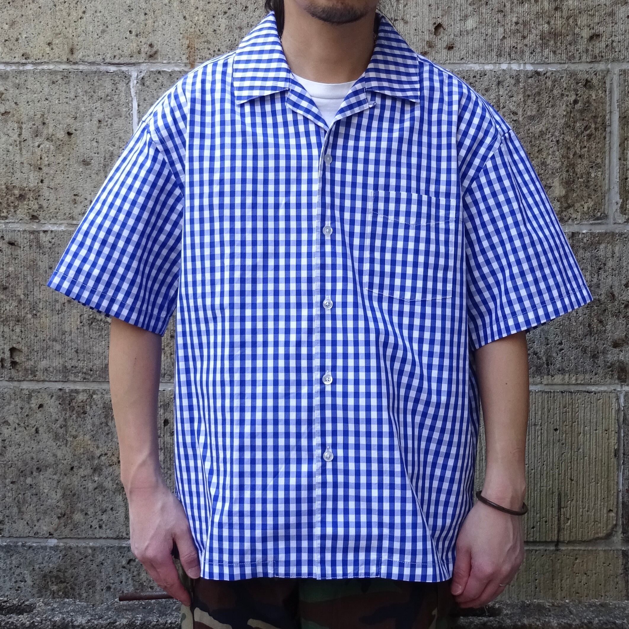 SERO (セロ) SHORT SLEEVE OPEN COLLAR GINGHAM ブルー×ホワイト
