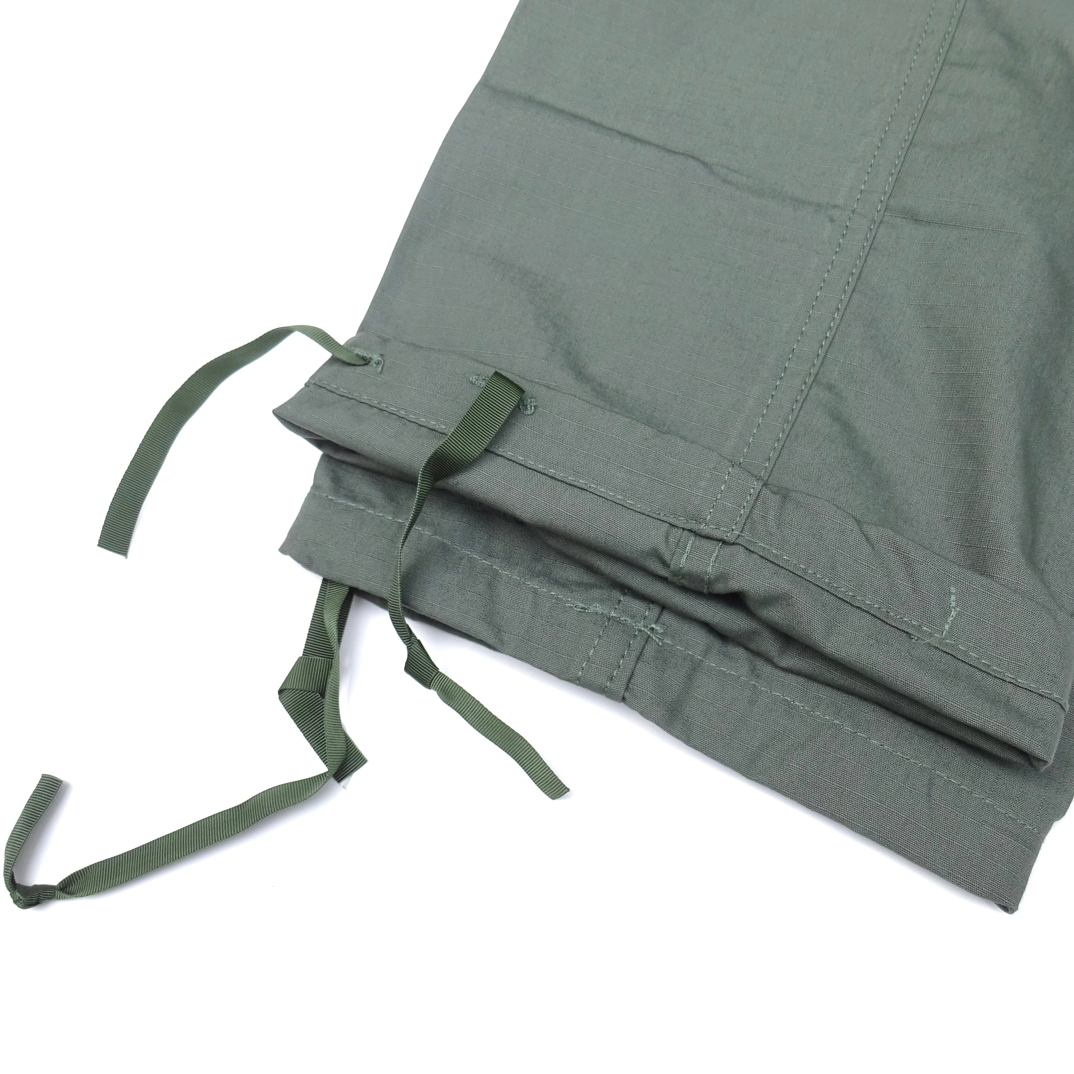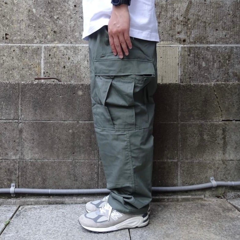 6ポケットを配置したミリタリーらしいゆったりとしたシルエットは裾にかけ緩やかにテーパード。裾に付属したドローコードにより裾巾の調整も可能。コットンリップストップを採用した生地は裂けに強く洗濯と着用を繰り返す事で表れる格子状のアタリ(経年変化)もお楽しみいただけます。またウエスト部に設けられたアジャスターにより10cm程度のサイズ調整を可能とします。