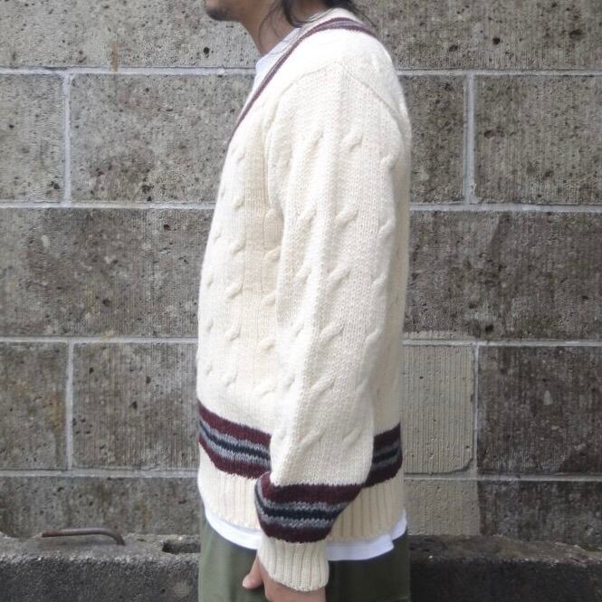 ボディ、袖にはケーブルパターンが施されたベーシックなデザイン。