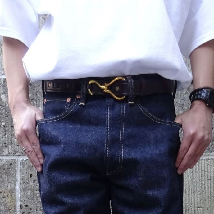 アメリカの良質なブライドルレザーを使用し熟練された職人の手によって生産されたこだわりのベルトは長くご愛用頂ける品質の高さと経年の変化をお楽しみいただけます。