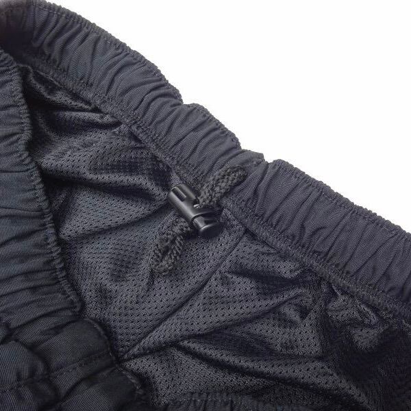 生地は撥水性と速乾性に優れたナイロンを採用。ライニングに施されたメッシュにより通気性も抜群です。負荷がかかりやすい膝とヒップは生地を二重にし強度を上げています。ウエストはゴムとドローコードを採用、裾はゴム仕様でジッパーによる開閉も可能です。