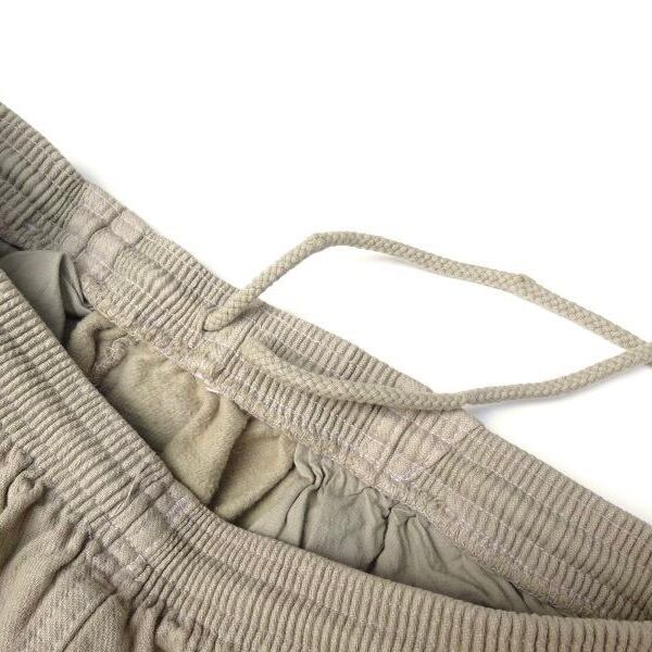 内側にブラッシュドコットン加工を施したソフトな肌触りが特徴でウエストは紐付きのゴム仕様、股下には動きやすさを重視したガゼットを採用しています。両サイドとバックの3カ所にポケットを配置。