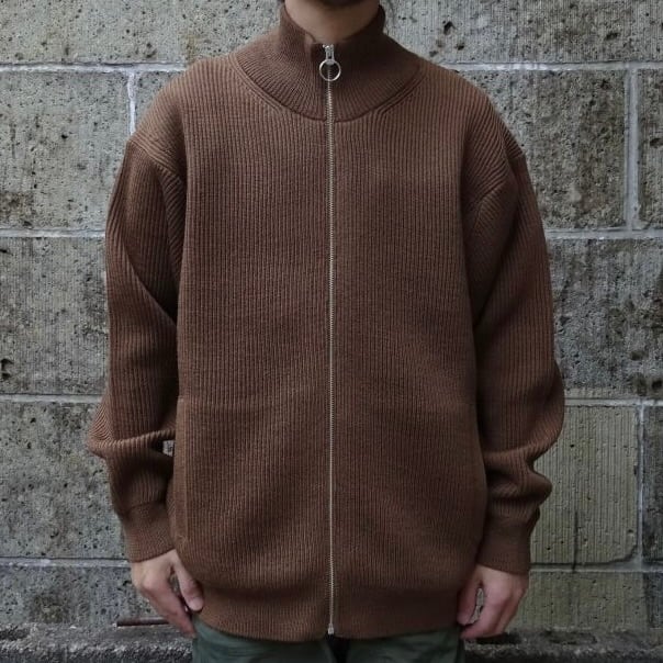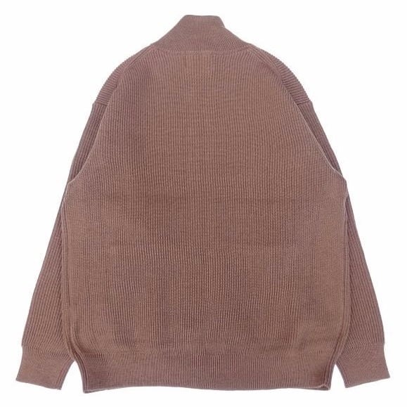 ドライバーズニットをデザインモチーフにフロントサイドにはポケットを配置。前回リリースされたラグラン仕様の物から今回はドロップ気味のセットインスリーブへと仕様を変更。定番の梳毛の両畦を採用し適度なハリを残しつつも柔らかな着心地が特徴。スムーズなジップ開閉でストレスなく着用いただけます。