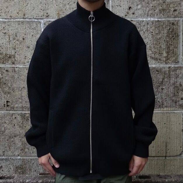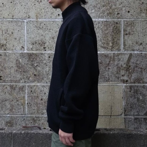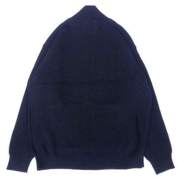 ドライバーズニットをデザインモチーフにフロントサイドにはポケットを配置。前回リリースされたラグラン仕様の物から今回はドロップ気味のセットインスリーブへと仕様を変更。定番の梳毛の両畦を採用し適度なハリを残しつつも柔らかな着心地が特徴。スムーズなジップ開閉でストレスなく着用いただけます。