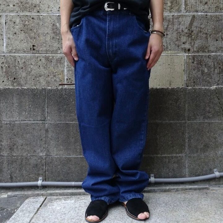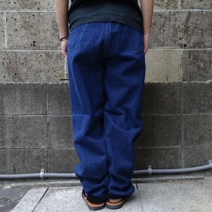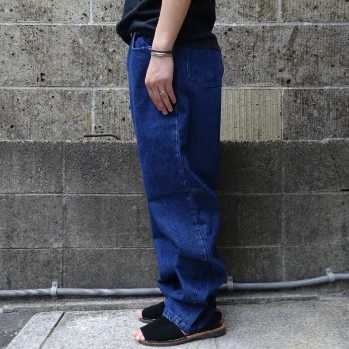 ゆったりとしたシルエットに同色のステッチを施したデニムのフロントはジップフライを採用。