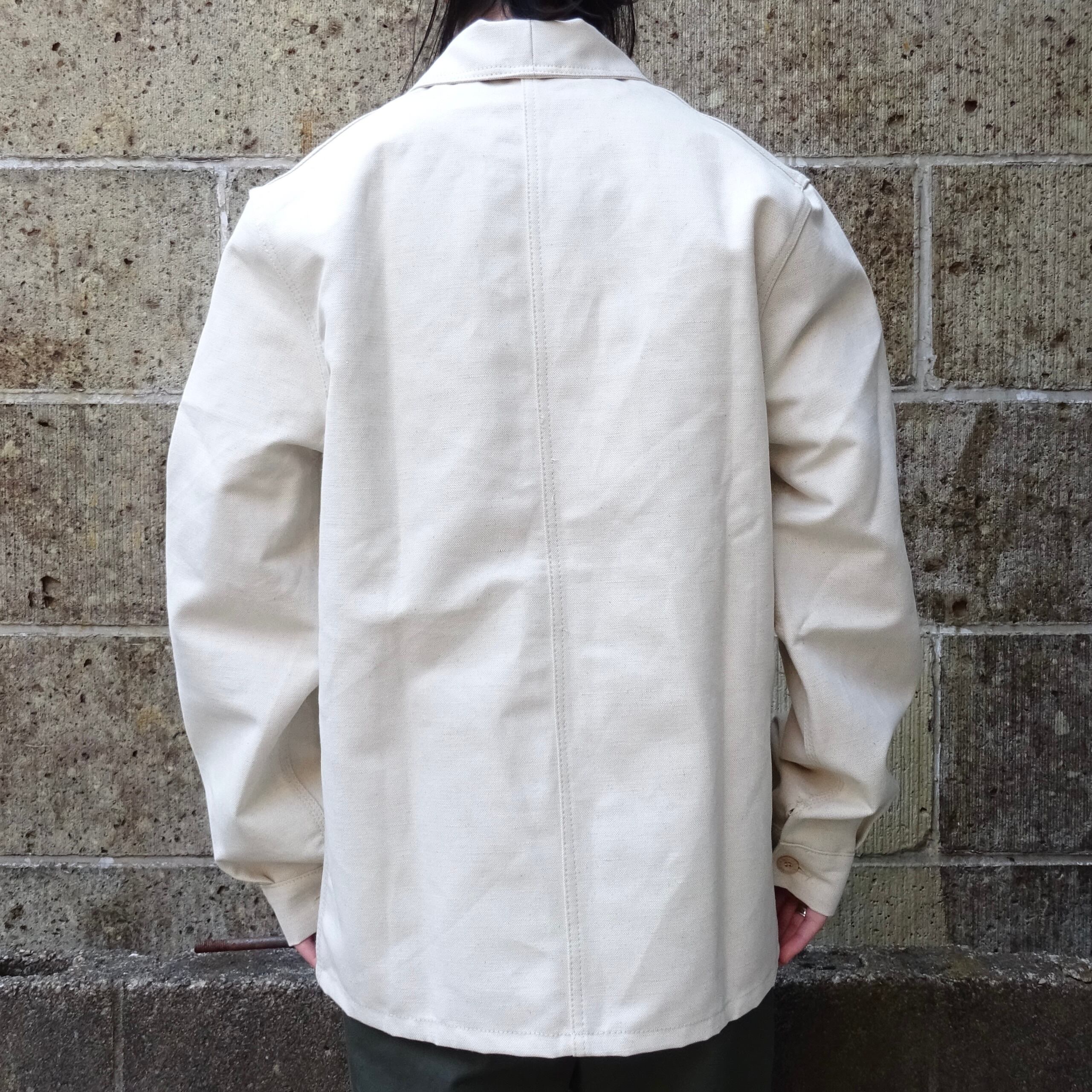 コットンリネン素材のカバーオールジャケットです。