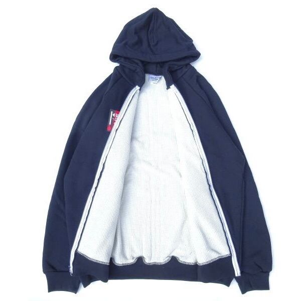 裏地にサーマルライニングを施したフルジップタイプのスウェットパーカーです。